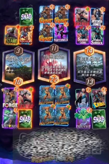 另外一套阵容可以利用至高进化作为核心,前排加入浩克+科尔森+阿里瑟姆作为抗伤点,浩克本身面板数值较高身板非常硬,至高进化可以增加额外增益,小淘气与其他角色能破坏对手卡组或者偷取增益效果为己所用,在中期顺利度过C位发育期能保住命值。这套打法技巧操作难度较高,属于进阶打法思路需要灵活判断场上的形式来改变攻守态势,尽量不要拘泥单个阵容否则会非常呆板。