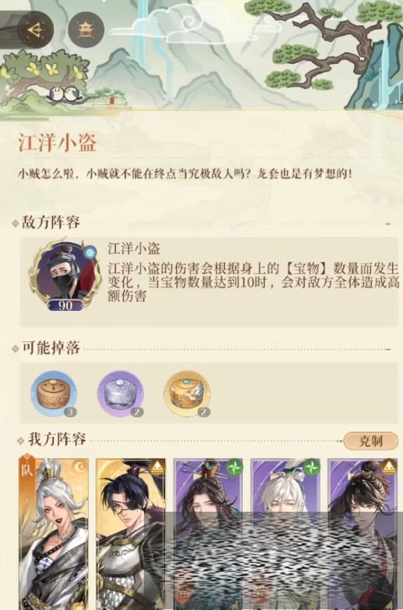 代号鸢江洋小盗关卡的机制很特殊,是骰子的模式。江洋小盗的能力是可以根据身上宝物的数量来增加自己本身的伤害,当宝物的数量达到10的时候会对敌人造成全额的伤害。这个关卡还是比较容易过的,可以根据他的机制来进行打。小伙伴们一起来看一下打法攻略。