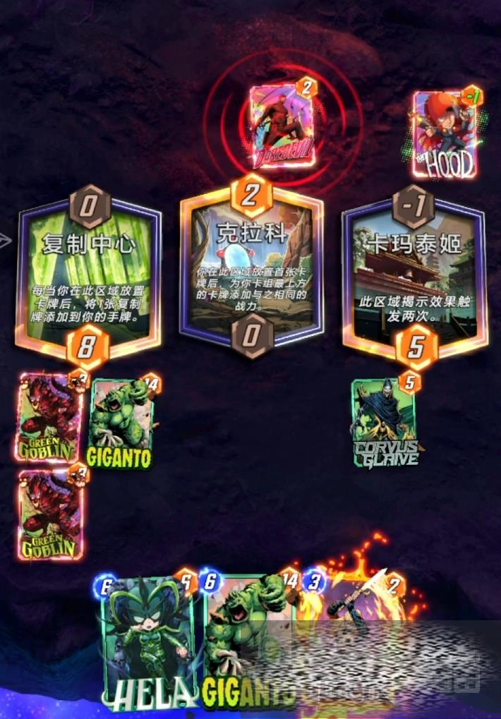 这个玩法的技巧就在于,魔多客可以没有任何条件的把大家的当前手牌扔掉,而海拉的效果则是直接把被丢弃的卡牌召集到场上,无视这些卡牌的放置条件,所以二者相结合以后,无论是只能放在左边的巨鲸兽,还是要求上一个回合不能放牌的次元行者,统统全都随机回到场上,能直接给己方增加许多战力值,如果手牌里还有其他战力超强的卡,一次就能拉回来超过40点战力,即使海拉会降低被拉回卡牌的2点战力,效果依旧爆炸。