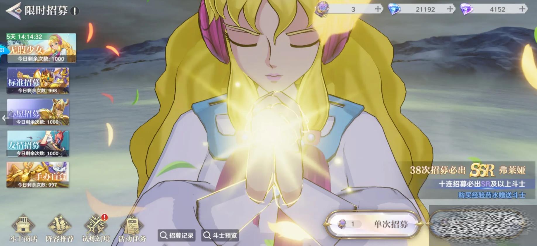 弗莱娅作为游戏中的SSR级别的限定角色,弗莱娅需要再特定的卡池时间里抽取。一般来说只需要连续地抽取了38次之后,就可以百分百获得这个英雄。若是大家对其感兴趣的话,还可以进行实时地预览。