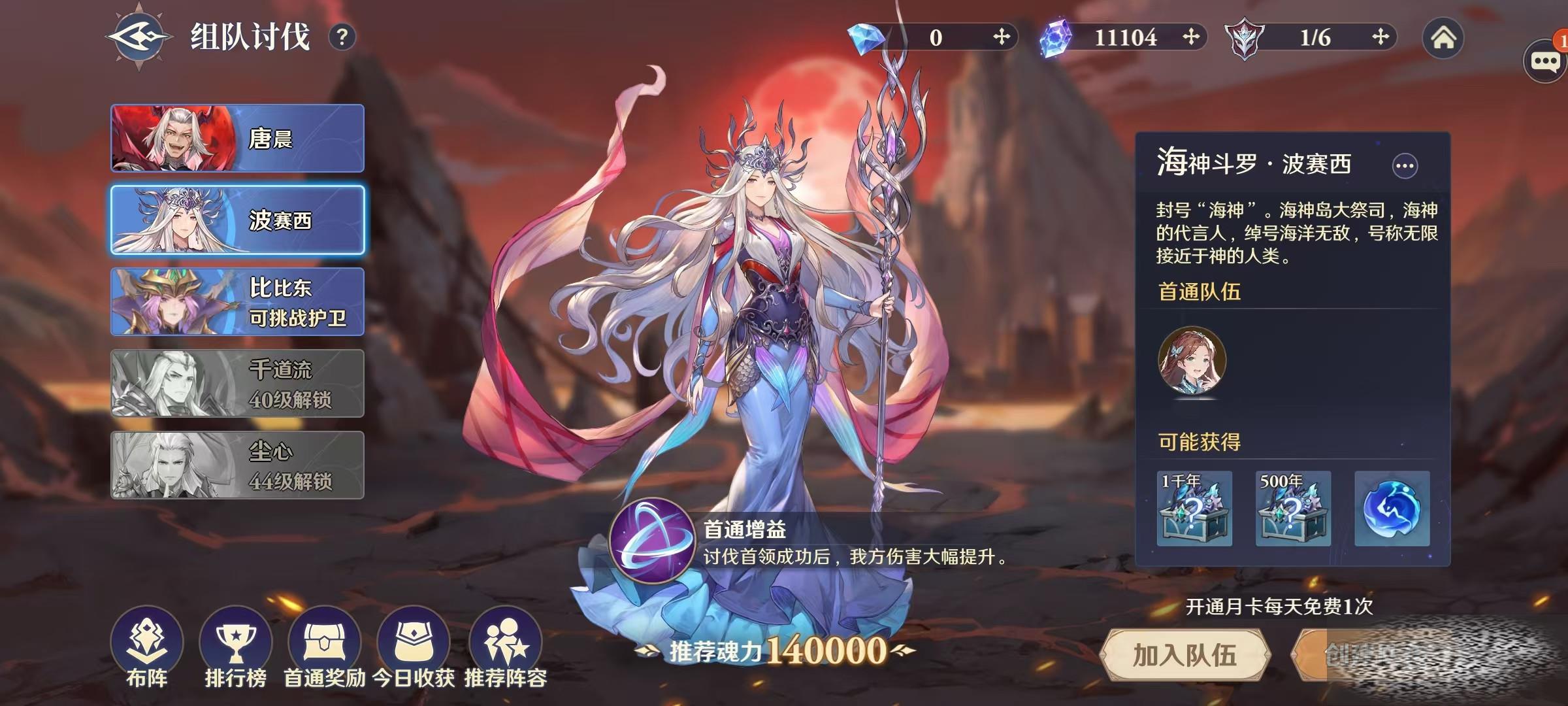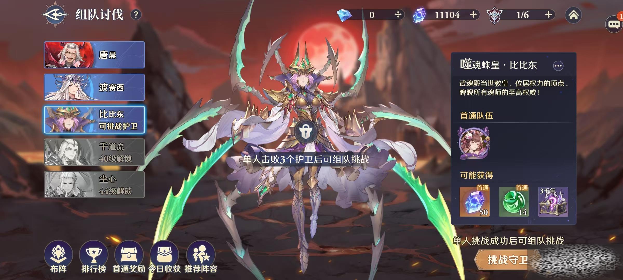 目前在组队讨伐中所开放的boss主要包括唐晨、波塞西、千道流和尘心等。只有通关了前一个首领,才能够往下继续战斗,同时也有着等级上的要求。部分首领在挑战之前还需要先单人通过守卫的验证,守卫验证需要分别使用1、2、3名魂师战斗,通过验证后就可以和其他玩家组队进行首领挑战了。这样的设置是为了给大家设置一定的门槛,毕竟组队可以借助队友的力量去战胜boss。