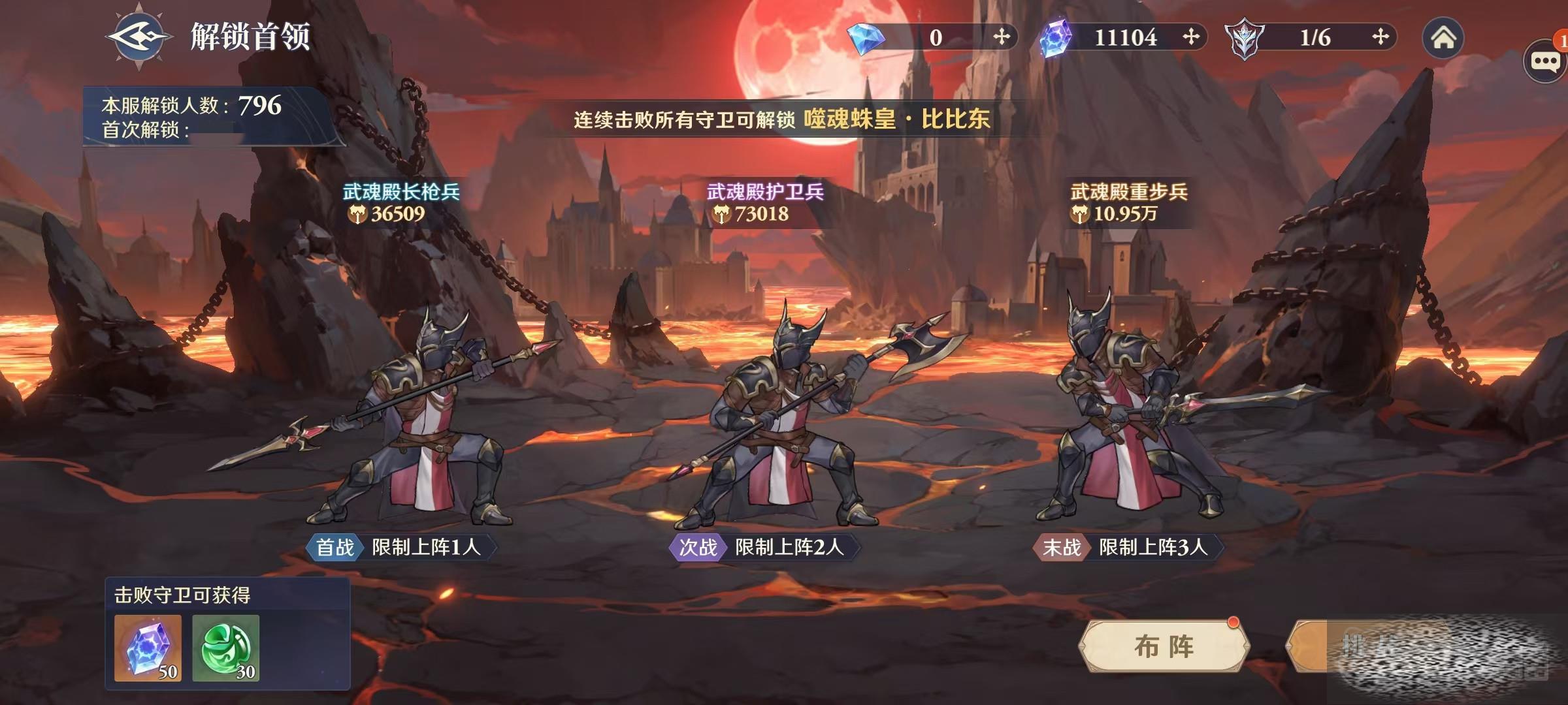 当完成挑战之后,在挑战首领的时候,大家就可以邀请好友一起组队,如果自身实力不济,那就邀请一些实力比较强大的队友,可以直接在自己的联盟中召唤。组队讨伐由三名玩家一起参加战斗,首先由队长开始,如果队长战败再由其他的玩家补上,所以自身实力不高的玩家可以依靠队友的力量战胜boss获得奖励。这项活动主要的奖励就是魂骨,还有获得魂晶和魂玉等奖励。奖励每天最多可能获得10次,每次挑战消耗1次,如果失败则不扣除次数。