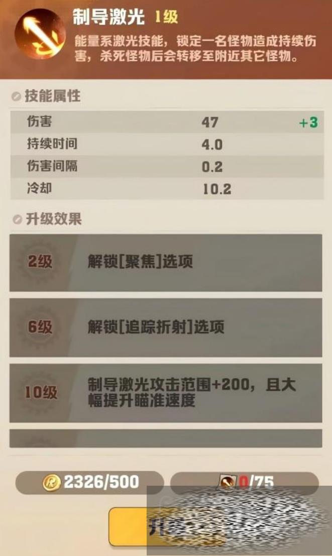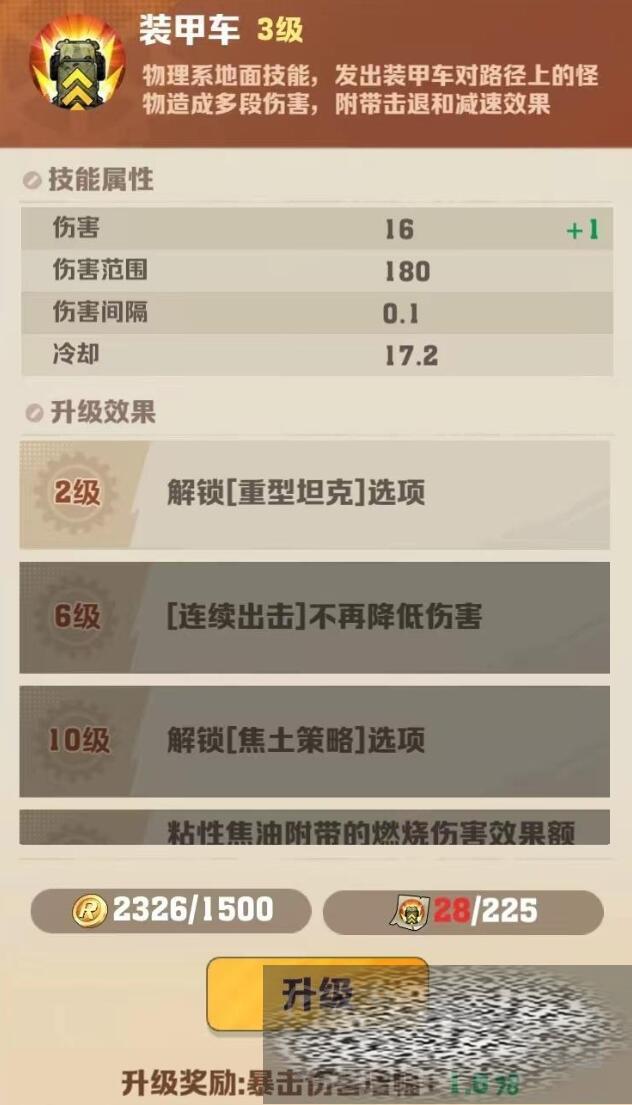 在选择子弹爆炸词条的时候,建议玩家优先选择,因为它能够有效地提高伤害性,这样对于玩家来说,推图方面就比较有帮助。可能玩家这时候还没有冰雹,飓风等等控制技能,所以玩家在开荒时可以学习高能射线。而在宝石和装甲车方面的话,玩家在刚开局的时候就可以秒杀宝石这时候选择装甲车的技能,利用装甲车的技能触发秒杀特性的小怪。