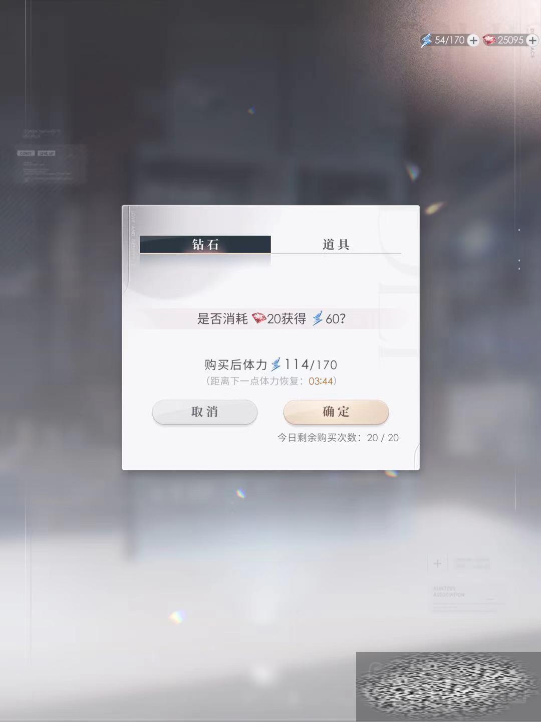 如果大家心急的话,可以使用钻石来购买体力。20钻石可以兑换60点体力,每天可以兑换20次。除此之外,大家可以通过完成每日任务,签到等方式来获得能量瓶,这些能量瓶使用了可以恢复30,60和100点体力。所以大家在游玩的时候,最好不要错过任何一个活动。