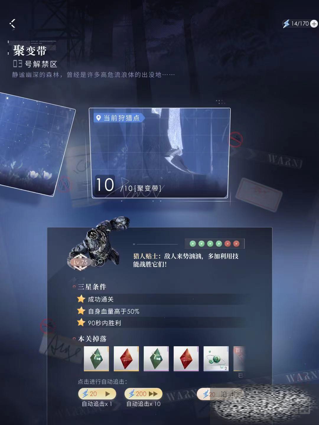 在战斗的时候,每次参加零点追踪,需要花费8点体力。而如果大家参加芯核狩猎,一次需要花费20点体力。所以,这两个升级卡的体力消耗大头就在这里了。小编推荐大家在每月一次的双倍掉落活动中再大量使用体力恢复能量剂,这样能够获得更多的养成材料。