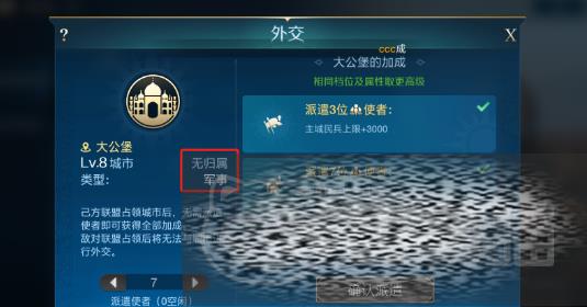 说到外交,那可真是一门艺术。在游戏里玩家需要像艺术家一样精心调配玩家的使者资源,让它们发挥出最大的效用。因为使者的数量是有限的,所以每一次派遣都要经过深思熟虑。要清楚自己当前的发展需求,比如如果玩家的城市正在大力发展工业和科技,那就应该优先考虑与能提供这方面,最好是和增益效果绝佳的城市外交。