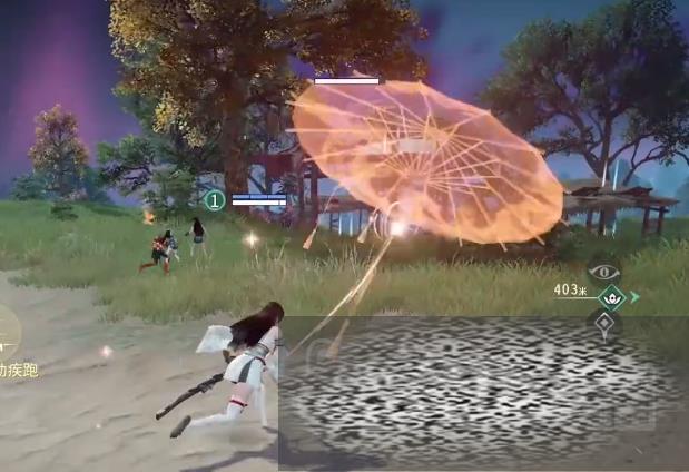 这个角色在游戏里有三个技能,第一个技能是庇护,使用技能之后可以治疗队伍里的其中一名队友,在治疗的时候会出现一个发光的伞连接两个人,在连接的过程中角色是无法攻击的,可以选择中断治疗,也可以选择瞬移到治疗者身边,让他保护自己。
