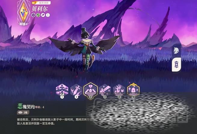 恶魔契约:是贝利尔的复活技能,在被击杀后,他会躲藏在敌人的影子中持续十秒钟。期间贝利尔视为已被击杀,但当场上有非召唤物的敌人被击杀时,贝利尔则会从被击杀的这名敌人处复活并回复一定生命值。这个技能为贝利尔提供了强大的生存能力,在实战中也有了拉扯的资本。朋友们可以运用这个技能,在关键时刻让贝利尔复活并继续战斗。