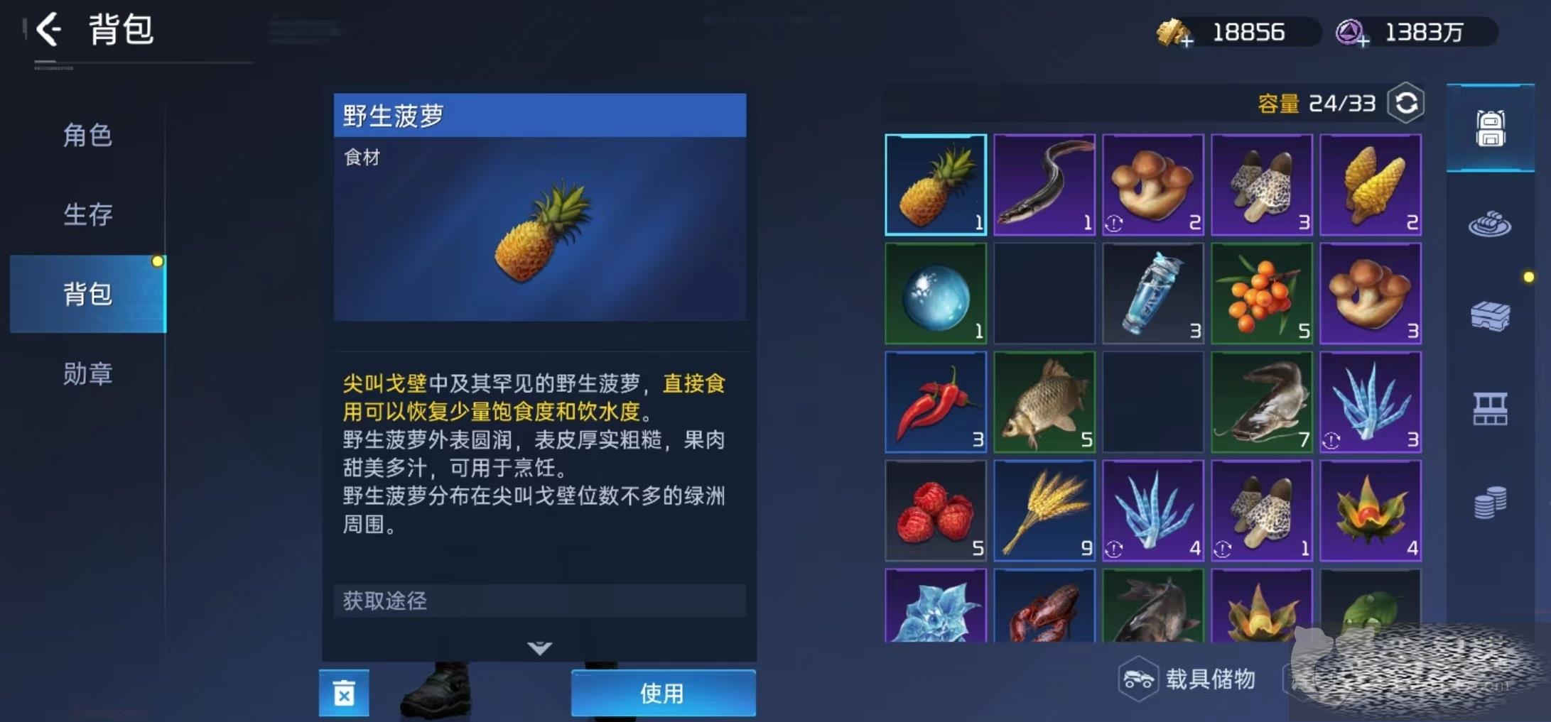 在所有食材中,果汁是制作比较简单的一类,只要加入对应水果和水就能够制作成功,但是在食材收集方面就需要下一些功夫。酸甜菠萝汁需要的是一份菠萝和一份水,菠萝品质无法改变。作为野生菠萝,在尖叫戈壁中出现的非常少,可以直接使用也可以拿来加工,外表圆润表皮厚实粗糙,但果肉却甜美多汁,一定要在尖叫戈壁找到绿洲以后,从周围有几率发现。如果寻找的位置是沙漠,那么肯定无法找到菠萝。