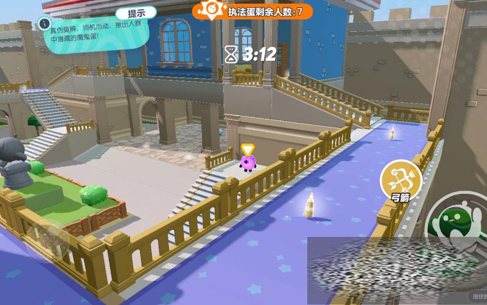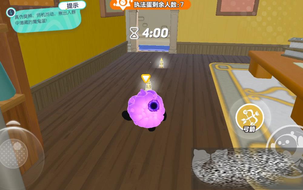 执法蛋可以用弓箭来从远处攻击,打到魔鬼蛋技能淘汰掉对方,但如果不小心打到了执法蛋则自会被淘汰,因此在没有十足把握的时候不要轻易出击哦!或许有人会问那执法蛋岂不是很被动?设计者也考虑到了这个,所以在地图上会有很多小蜡烛和大蜡烛,拾取能缩短游戏时间,毕竟只要时间到了执法蛋还活着就能获胜。