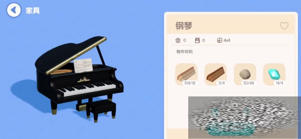 通过任务的不断进行,工作台解锁了钢琴制作方案,此时就可以自己造一架钢琴了。