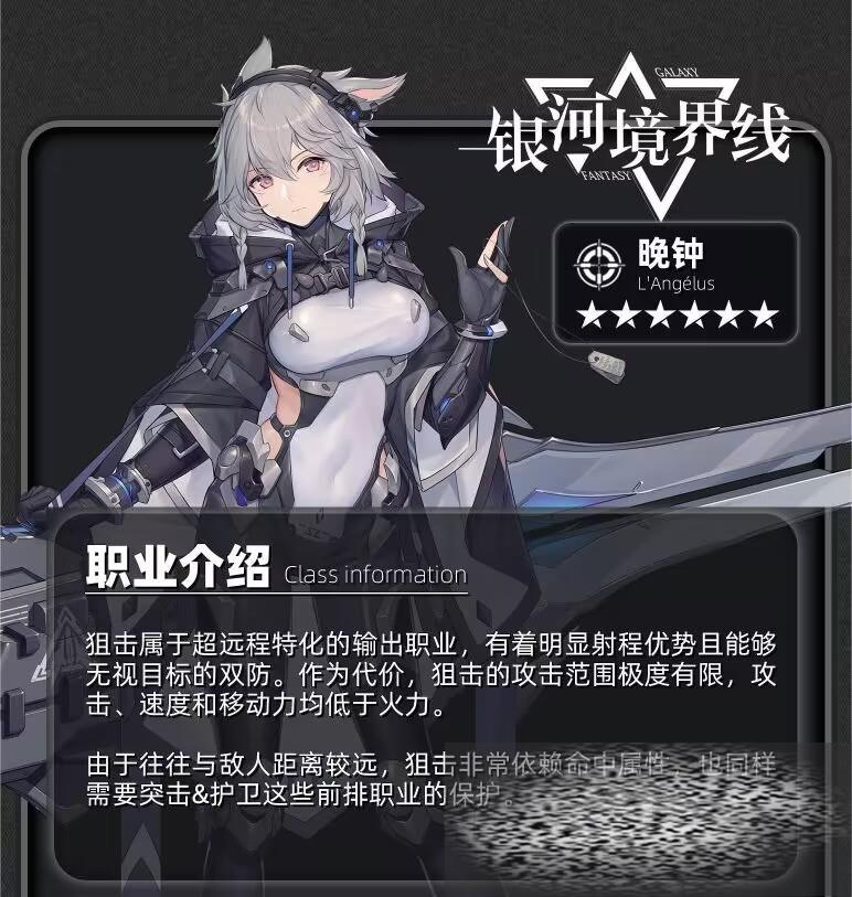 对于熟悉银河境界线的玩家来说,他们应该清楚游戏中有很多种不同的角色,每个角色都被划分为不同的职业。而晚钟在游戏中则是一个狙击型角色。那么银河境界线晚钟强度怎么样呢?如果有小伙伴对这个角色的实力产生了疑问,不确定是否要投入培养资源,赶紧跟着小编一起了解下晚钟的技能以及玩法。