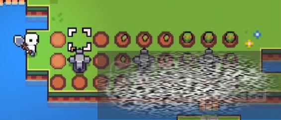 要种地当然要选一块好地皮,岛上原有的资源咱们先给它挖了,扛起大镐开始吧!地整完之后就可以安放洒水器了。别看洒水器是十字形的,但其实对以它为中心的周围八块地都能进行灌溉,加上它自身,所以一片完整的种植地需要九格空间。