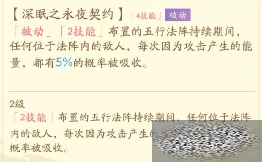 最后一个被动深眠之永夜契约,在二技能布置法阵持续期间,任何处于法阵内敌人每次因为攻击产生能量都有几率被吸收。针对这些技能特点,聂仙定位也非常清楚,在能量吸收方面有着独特表现,这也就意味着有更多机会放出技能。
