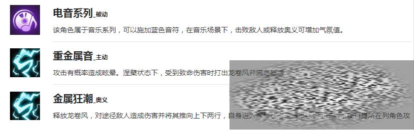 电音系列_被动:这一个角色就等同于是音乐系列可以有效获得一个蓝色的音符,一旦在音乐场景下释放奥义或者是击败敌人,都可以获取气氛值。