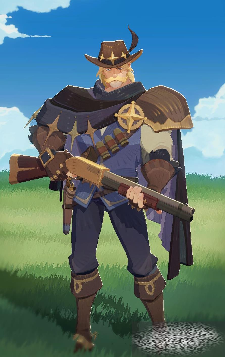 战斗过程中的第1个技能六连开,给手枪装六发子弹,随机攻击面前敌人,优先射击在本次释放中没有伤害过的目标。每发子弹造成伤害时都会附加目标最大生命值5%的额外伤害,并使目标眩晕1.5秒,如果伤害同一个目标,后续伤害会有衰减。第2个技能散弹扫射,普通攻击发射出三枚穿透敌人的子弹,对前方敌人造成范围伤害,主目标会受到三枚子弹的输出。通过提升该技能等级,在普攻出现暴击时,会对伤害的敌人额外造成短暂眩晕,虽然眩晕时间很短,但依然可以起到打断限制等效果。