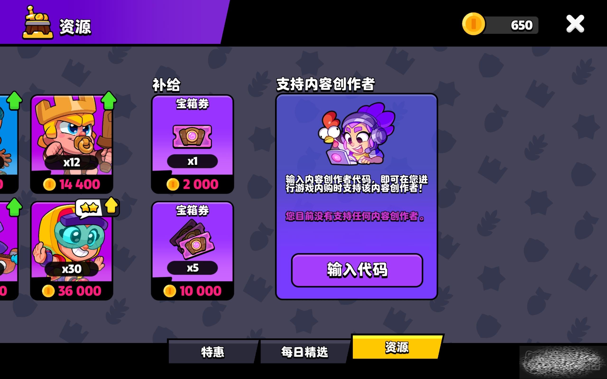 商店内划分了三个区域,分别是特惠、每日精选和资源。