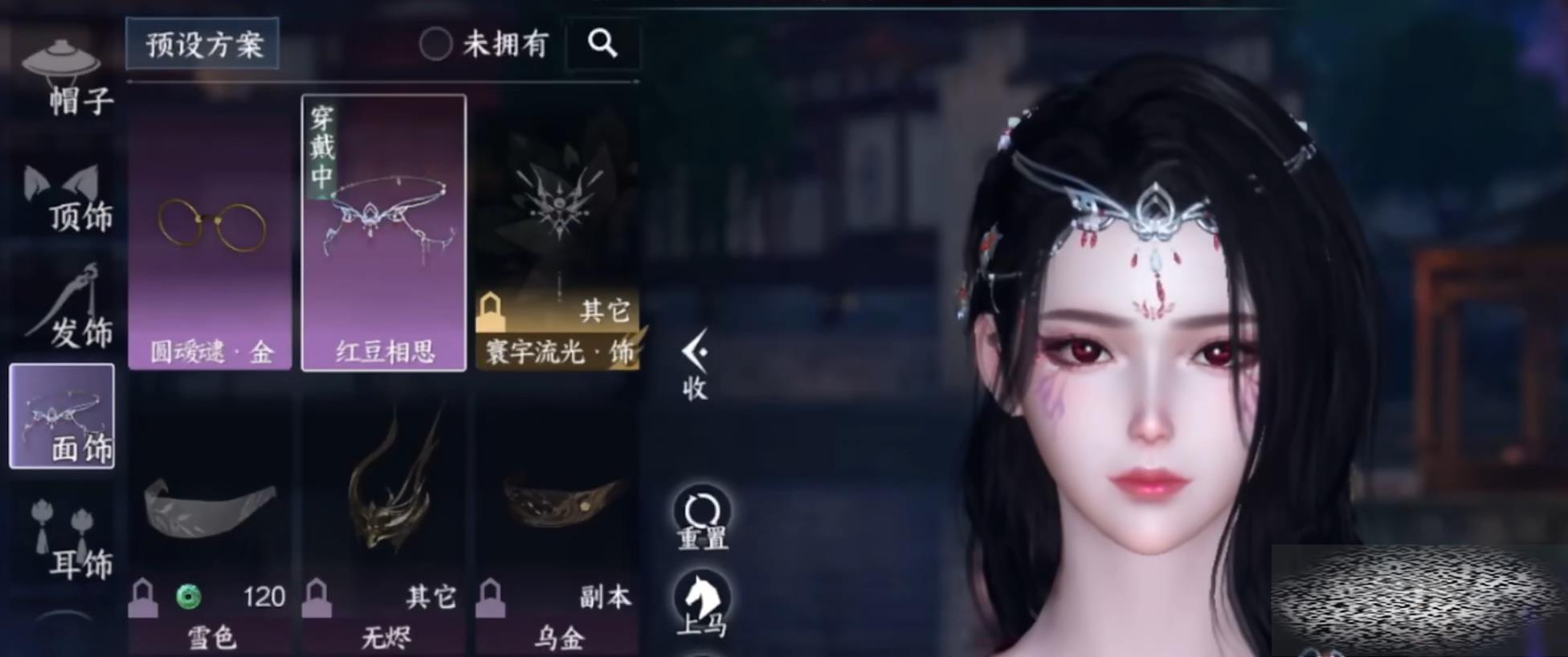 首先适合黑色发型的头饰,红豆相思的发饰,银色的发箍搭配红宝石的装饰,是很多古装女性都能搭配的游戏头饰,并且这个饰品不会遮挡发型,这样玩家还能凹一下自己的发型,各种各样的美女都能穿戴,获取的方式就是门派的任务。