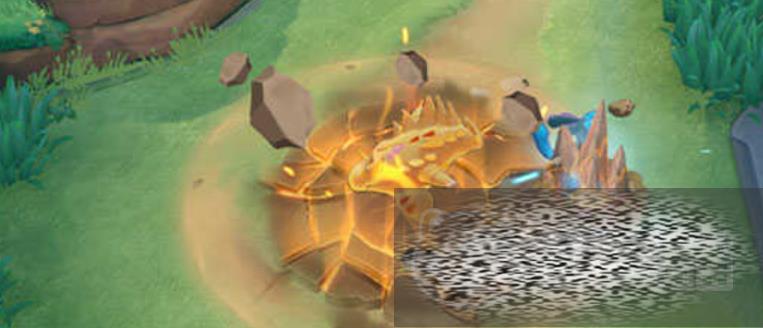 2技能“岩石打磨”,向前突进位移造成伤害,命中后会在短时间内提升自己的攻击力。升级后可选分支“原始之力”和“流沙深渊”。“原始之力”是蓄力技,在蓄力的过程中有移速加成有护盾,蓄力结束后会对周围敌人造成伤害与定身,命中的话可以再次使用该技能,对前方敌人造成些许伤害与减速,也可以再次获得护盾。该技能省级会强化护盾值并增加攻击。