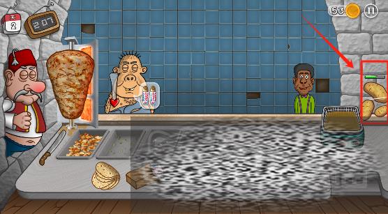 将土豆点击一下,进度条只要变成绿色,就可以放入到炸锅中,接着依次放入调料,等到所有的材料准备齐全就可以进入到接下来的制作阶段。在完成之后可以把卷饼放入到其中,点击完成包装。