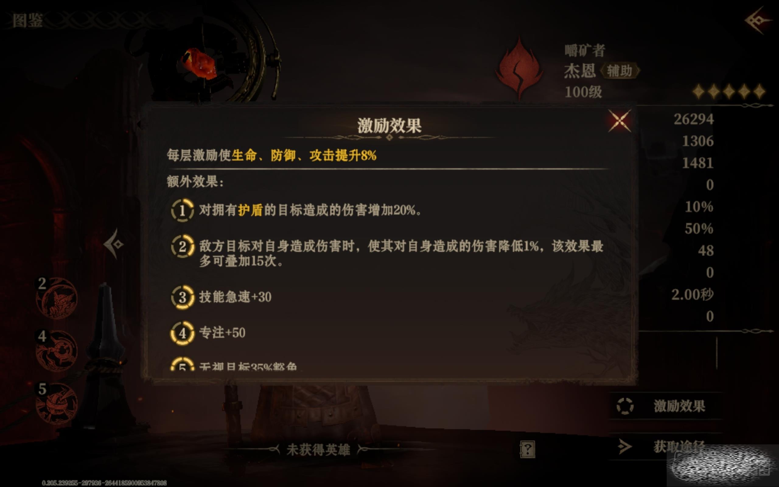 虽然再次抽到杰恩这类传说级卡牌的概率并不高,但随着摸奖次数的增加,重复的概率也会变高,这时直接将其用在激励上,就能进一步提升英雄的各项属性,每提升一层还能得到额外的效果,比如一级时去攻击有护盾的目标,伤害会的更高。
