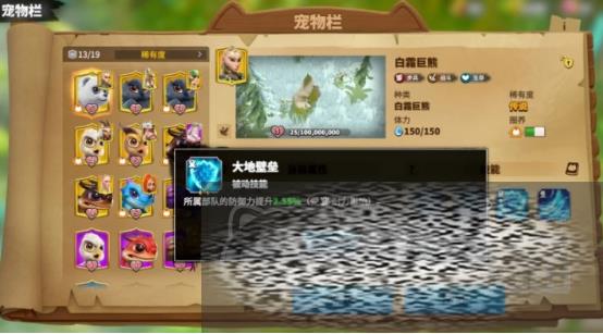 其次推荐的是白霜巨熊,这个精灵宠物比较适合于有护盾技能的角色搭配。两者搭配在一起之后能够获得超强护盾,当受到普通攻击时,大概有40%的概率对敌人造成一次伤害,被动技能让天赋造成的伤害额外再提升5%。
