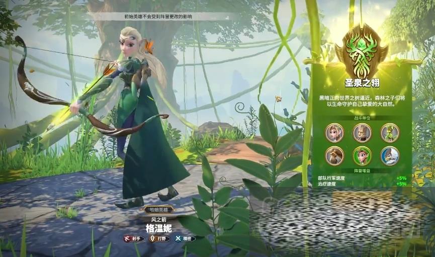 如果玩家不太重视采集速度的优势,那么选择精灵族也是不错的,在游戏初始阶段,精灵族会配备弓箭手格温妮,虽然她在早期的战斗力可能略显不足,但随着游戏进程的推进,她将获得治疗能力,这一能力提升了部队在持续战斗中的存活率,格温妮的天赋可以增加自身15%的伤害输出,结合其固有的攻击技能,能够在对抗野外敌人时发挥出连续而强力的打击效果。