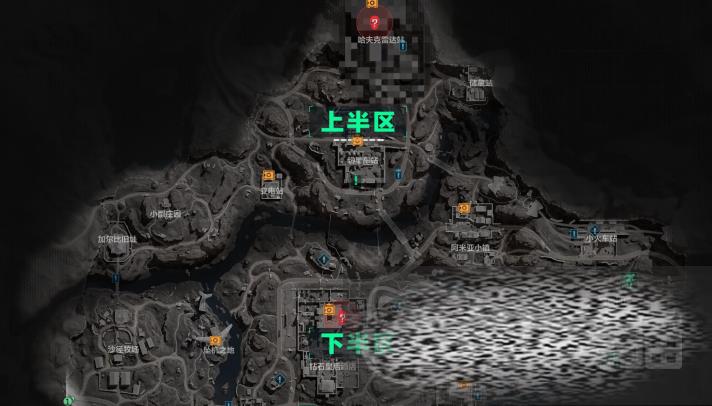 之后是第二张图,这张图叫做长弓溪谷,该图是一张大图,图中的资源点位很多,这资源点位从左往右来看的话,分别是加尔比旧址、沙径牧场、坠机之地、变电站、钻石皇后酒店、码头、阿米娅小镇、车站和雷达站。