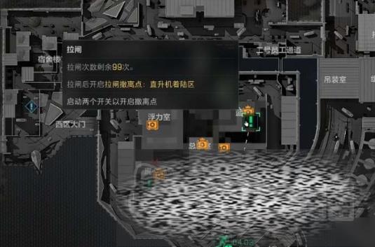 很多玩家并不了解具体所在的位置,第1个拉闸点比较好找,我们可以来到蓝市附近通往负1楼,在工厂下方就能找到。第2个在离心机室,进门之后左拐上楼,在走廊深处就能找到。此外拉闸点还有很多,只要找到两个玩家就可以乘坐直升机快速撤离。