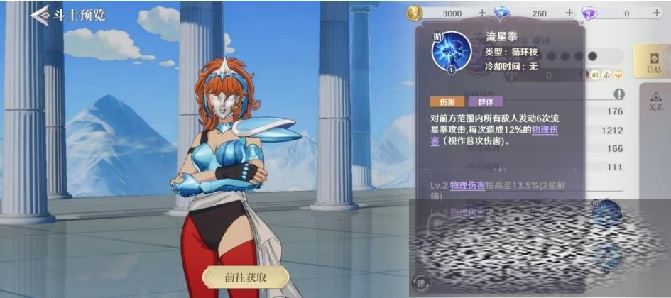 流星拳是魔铃的循环技之一,能够对前方范围内所有敌人发动6次流星拳攻击,每次造成12%的物理伤害,这个技能是一个群体伤害技能,能够对多个敌人造成伤害,非常适合在面对大量敌人时使用,Lv.2时物理伤害提高至13.5%,Lv.3时物理伤害提高至15%。