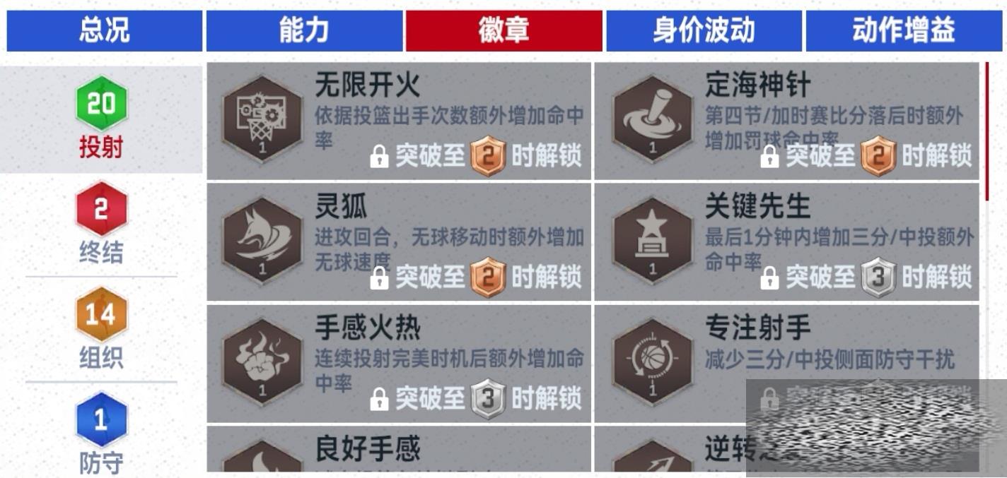 徽章算是本作的一个特色系统,在后续的球员培养中,玩家需要花费大量的资源去让球员突破,达到更高的阶数,阶数越高可以解锁的徽章数量就越丰富,在与其他玩家进行实时对战时,你就可以利用自己的特殊技能,去取得更好的成绩,进而赢下更多的比赛。