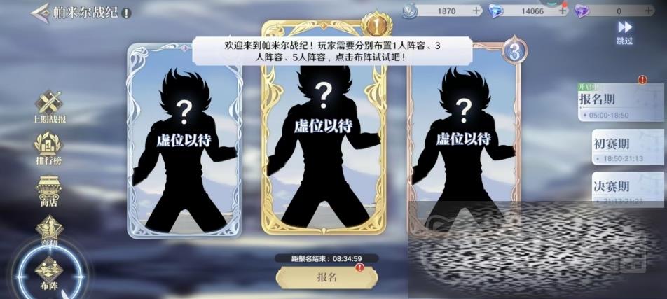 帕米尔战战纪:这场比赛分为初赛阶段和决赛阶段,在奖励方面,每场比赛结束后,玩家都有机会领取相应的奖励,此外,玩家还可以在报名期间进行竞猜,预测当日比赛的胜者,对于猜中胜者的玩家,他们将获得大量的奖励,而对于那些未猜中的玩家,游戏同样给予了一部分的奖励,每位参与者都能从比赛中获得一定的收益,一开始参与之前大家就必须安排好三场比赛的阵型,而游戏会以玩家在报名时刻所持有的斗士与神器培养数据作为参赛依据,每个斗士在整个赛事中最多只能上阵一次,同时比赛开始前30秒内,玩家将无法调整斗士阵容,在这短短的30秒内,玩家必须迅速地评估自己的阵型,做出最后的调整。