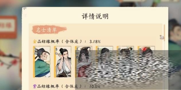 玩家获得角色卡的方式上通过结缘玩法来获得,结缘玩法就是这个游戏中的抽卡,可以抽一次也可以抽10次,建议玩家尽量以10抽的形式来抽取,在抽取上有保底。同时这些名士有品质的区别,最高为金色,然后上紫色、蓝色和绿色。在角色的培养上建议以金卡和紫卡为首要考虑。