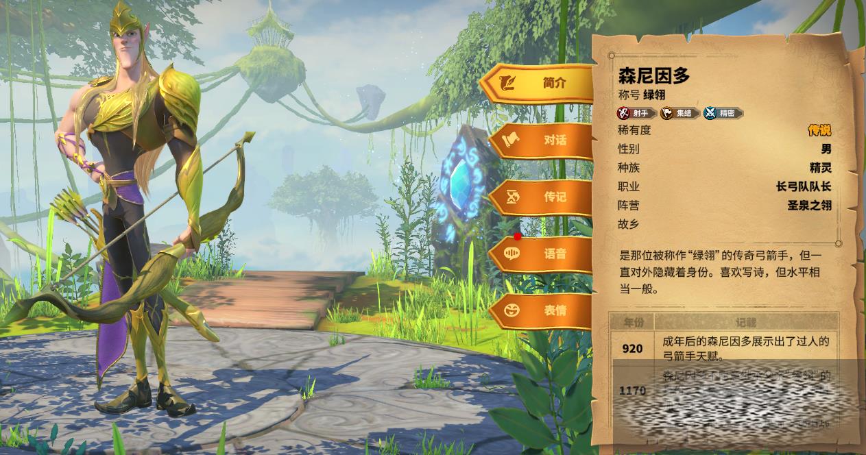 接下来看第二个被动效果,可以让所率领的射手单位,普通攻击暴击率增强4%,同时生命值也提升5%。最后是”森林之影”这个被动,进入战斗后,率领的军团获得急射效果,同时能每秒额外发动一次普攻,1秒后,率领军团的攻击力提高10%,该效果会持续到战斗结束。
