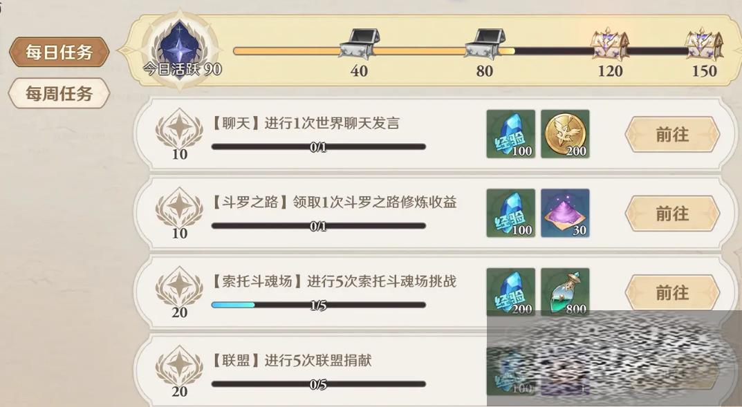 游戏里面玩家们会在前期就能解锁任务系统。这个任务系统一般分为三种,分别是主线任务,每日任务和周任务。我们先说主线任务,玩家们在第一次通过主线关卡的时候除了会获取到关卡星级的奖励,同时也会完成主线任务,主线任务会给玩家们不菲的奖励。每日任务,这个任务是玩家们每日都会刷新的任务。基本上这些任务都是属于比较固定的任务,玩家们在完成之后得到奖励。周任务是一周刷新一次,每一个奖励都高于每日任务,全部完成的话有额外奖励。