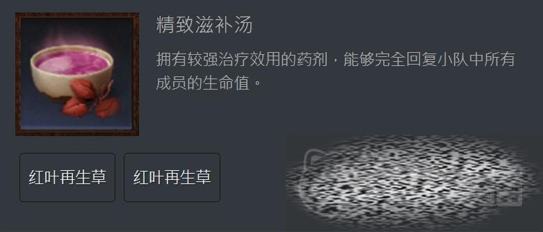 极品滋补汤和精致滋补汤则是游戏中最常用的两种食物恢复道具,极品滋补汤由两份金绒再生草和两份玫尔洛斯番茄采用最高级食材精心熬制而成,能够完全回复所有英雄的生命值。而精致滋补汤则由两份红叶再生草制成,拥有较强的治疗效用,能够完全回复小队中所有成员的生命值,这道汤品虽然制作相对简单,但同样具有不错的恢复效果,是玩家们在战斗中常用的恢复道具之一。