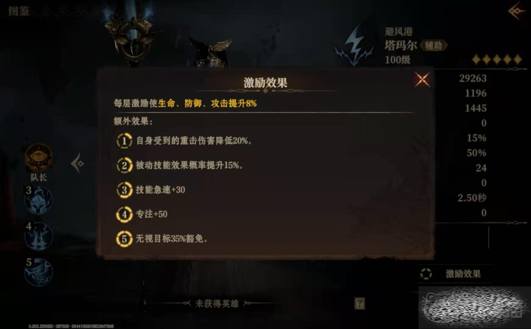 在后续的游戏过程中,大家肯定会去抽卡,重复的次数多了,就会积攒下来不少相同的卡牌,这些物品可以去分解成资源,也可以用来激励现有的英雄,使其变得更强,比如经过激励的塔玛尔,就能拥有更好的专注、攻击、防御和生命值了。