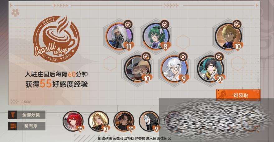 庄园的休息区是一个重要的功能区,最多可放置6名伙伴入驻庄园,入驻的伙伴可以在庄园内自由活动,随时间累积好感度,领取后可提升对应伙伴的好感度。需要注意的是,当伙伴好感等级达到突破瓶颈时,入驻将无法继续累积好感度,庄园交互玩法中,拜访和互助是两个重要的环节,每日玩家都可以前往好友庄园拜访好友庄园入驻的伙伴,通过拜访可以获得对应被拜访伙伴的碎片。