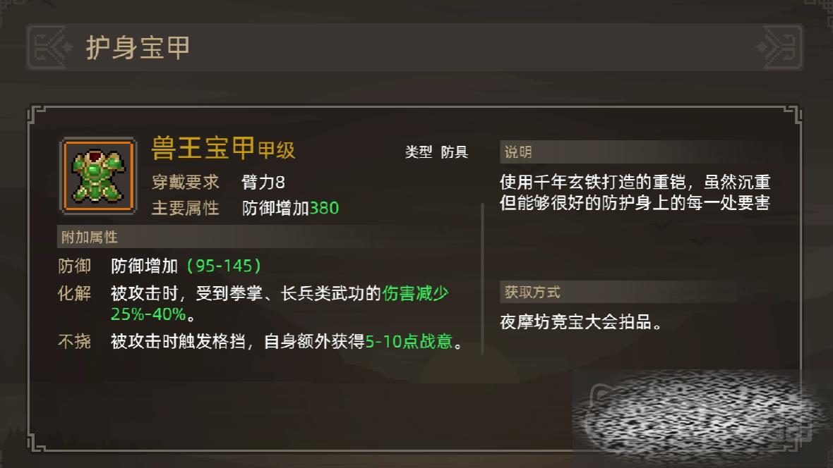 以上内容就是本期小编给大家带来的大侠立志传金色防具获得攻略的全部内容了,在游戏中金色防具是最顶级的甲级防具,但是玩家也是需要注意他们的搭配哦,希望看完本期内容的小伙伴们可以实际进入到游戏内体验一下哦。