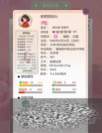 虽然这个游戏是一个文字题材的设定,但是整体的设置是非常贴近生活的,成员出生之后会像现实生活中一样有不同的出身和家庭背景,但是这些背景只是先天的设定,只要后期可以努力,就能把自己的人生引导到不同的走向。