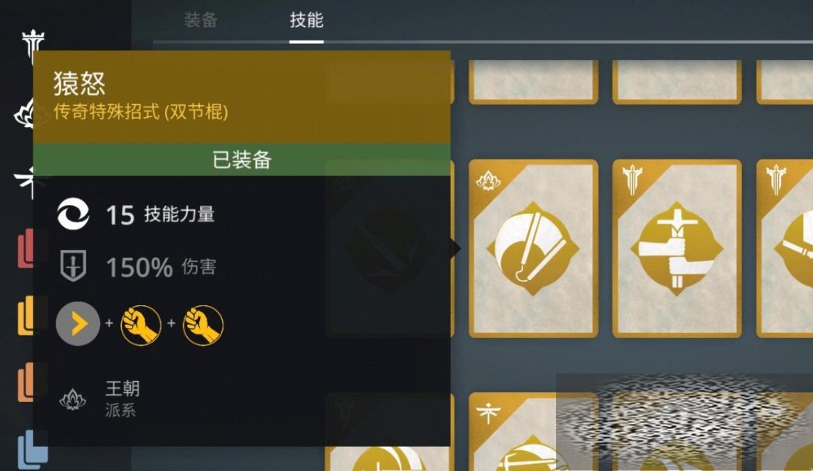 猿怒这个花招最适用的武器是双节棍,在第2章中就可以用出来。一共可以打五下,前三下是来回使用双截棍,第四下是用脚踢,最后一下是从上到下对头暴击。如果想要完成一套相对完整的连招,那么一共需要按四下前拳,因为第2招和第3招是需要连续释放的。如果对手身上不存在霸体效果,那么第1、第2和第5次攻击都是可以爆头的。