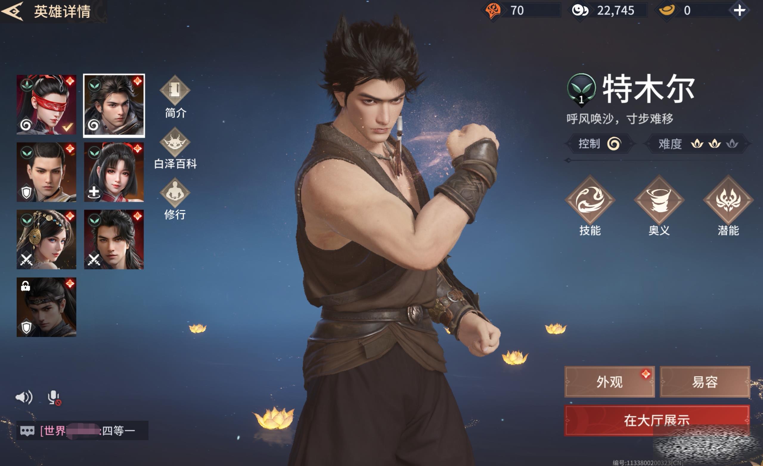 与其他吃鸡类手游不同,在永劫无间当中,玩家每局对战开始前,需要自行选择一个带有技能的英雄,就算你开局什么都没捡到,赤手空拳也能与敌人过过招,特木尔就是诸多英雄之一,那么永劫无间手游特木尔修行奖励有什么呢?制作团队将游戏内的英雄分为了四大类,分别是控制、支援、生存和输出,特木尔属于控制型的角色,它的奥义狂沙怒号可以制作出一个风牢,延缓敌人的移动,为你带来宝贵的回血时间。如果你刚入坑,不知道怎么查看修行奖励,那么点击下图中所示的修行按钮,就能进入到对应的界面。